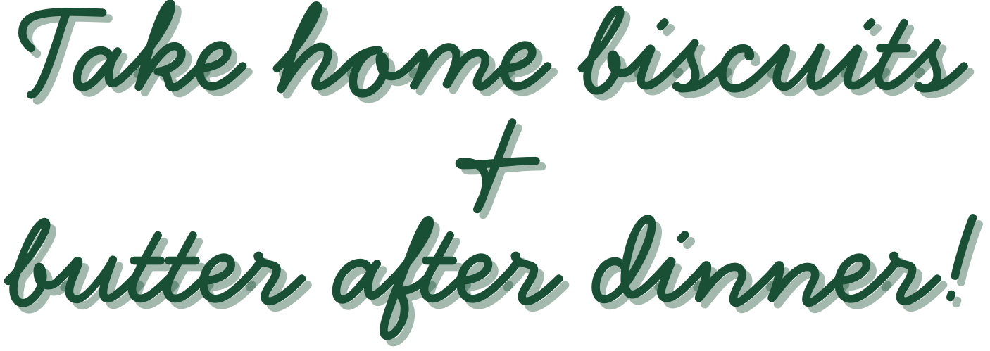 Biscuits & Butter To-Go To-Go Dinner Biscuit 6-Pack $10.00 Purchase Added! To-Go Butter $4.00 Purchase Added!